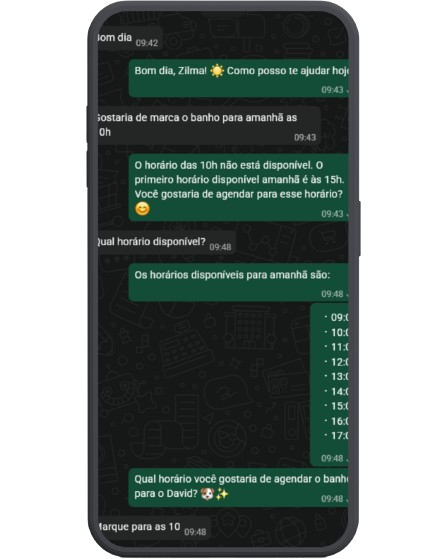 100%! Configuramos horários, serviços, preços, mensagens e todo o fluxo de acordo com a sua realidade.
